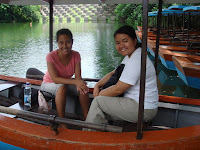 We planned to meet at McDo Quezon Ave. at the early hour of 8 AM but due to our usual office schedule which ends late at night, we were late as usual. :p Anyway, after a healthy breakfast and some grocery shopping for snacks at Hi-Top, off we went for another road trip. Following our map and after a few wrong turns, we finally reached our destination at approximately 11:20 AM. First stop was at the ticket booth where we paid for our entrance fee, then bought tickets for the 30-minute boat ride at the Superferry Boating Lagoon. Our boat’s name is Camiguin and we were the first boaters J. I was expecting for a boatman to accompany us but to my surprise, it was us who should do all the rowing. Hesitant and at the same time excited, we got on board. The person in charge was kind enough to give us instructions on how to row and also took a picture of us. Since we were not really experts in rowing, the first few minutes were a mess. At times I became confused with the backward-forward thing so we were always heading in the wrong direction. We were laughing so hard at our silliness which made rowing harder hehe. But we learned to master it and we were able to enjoy the serenity of the lagoon. Rowing is tiring but it sure is a good exercise.